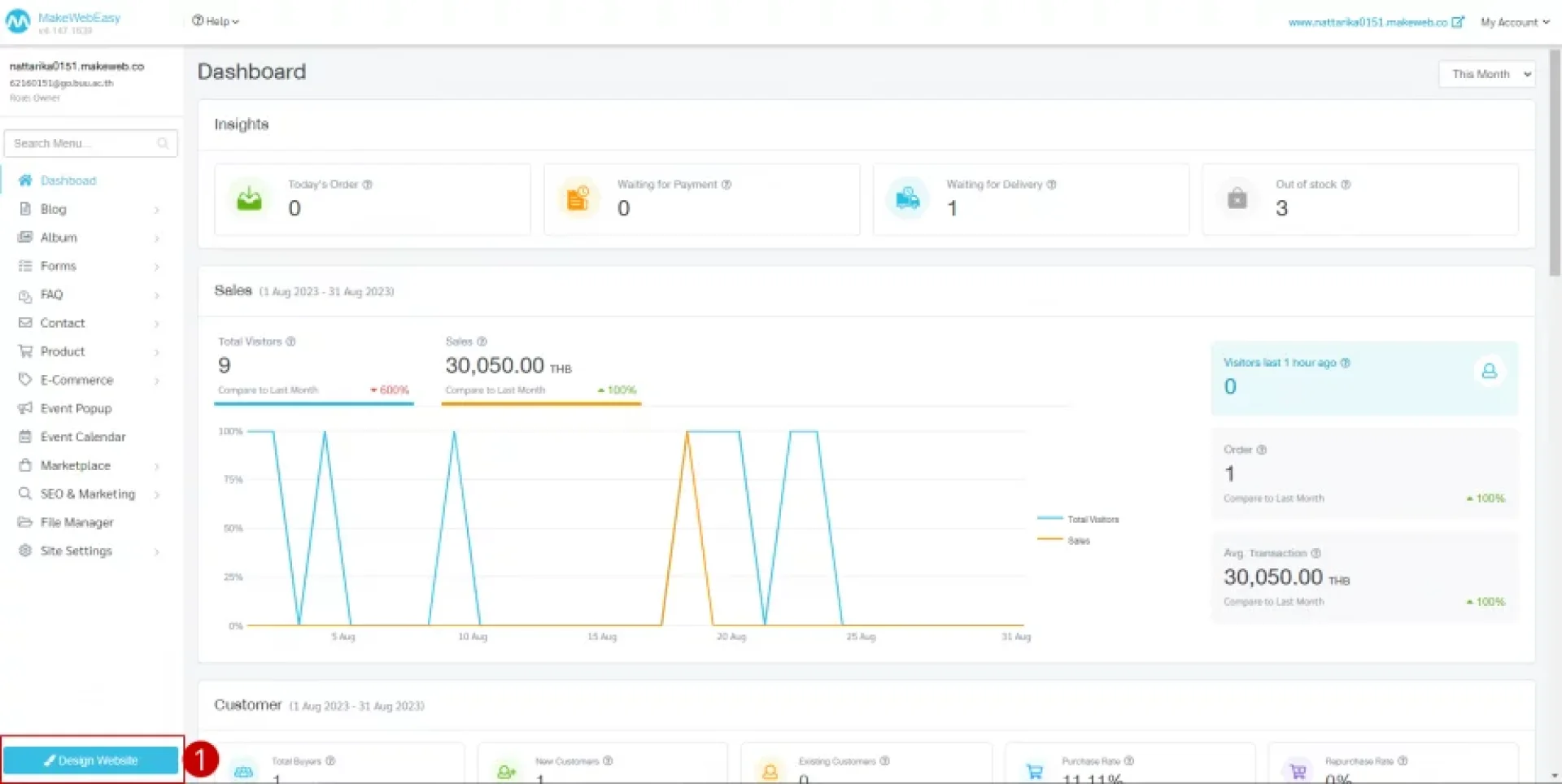 1 คลิกที่ปุ่ม ปรับแต่งดีไซต์ (Design Website)