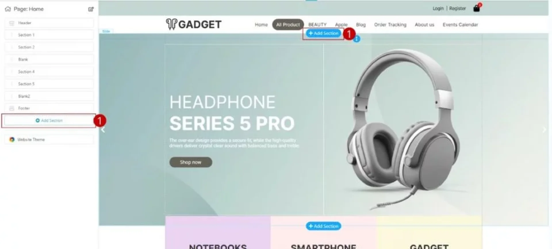 วิธีการตั้งค่า และการปรับแต่งส่วนของเนื้อหา (Add Section)