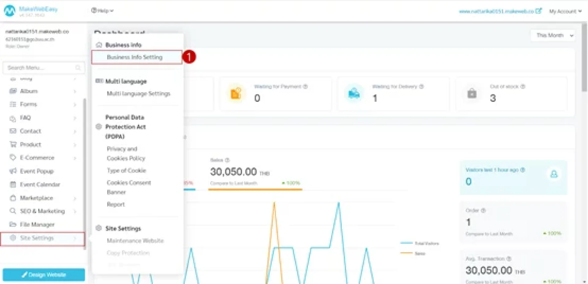 1.ไปที่แถบ ตั้งค่าเว็บไซต์ > ตั้งค่าข้อมูลธุรกิจ