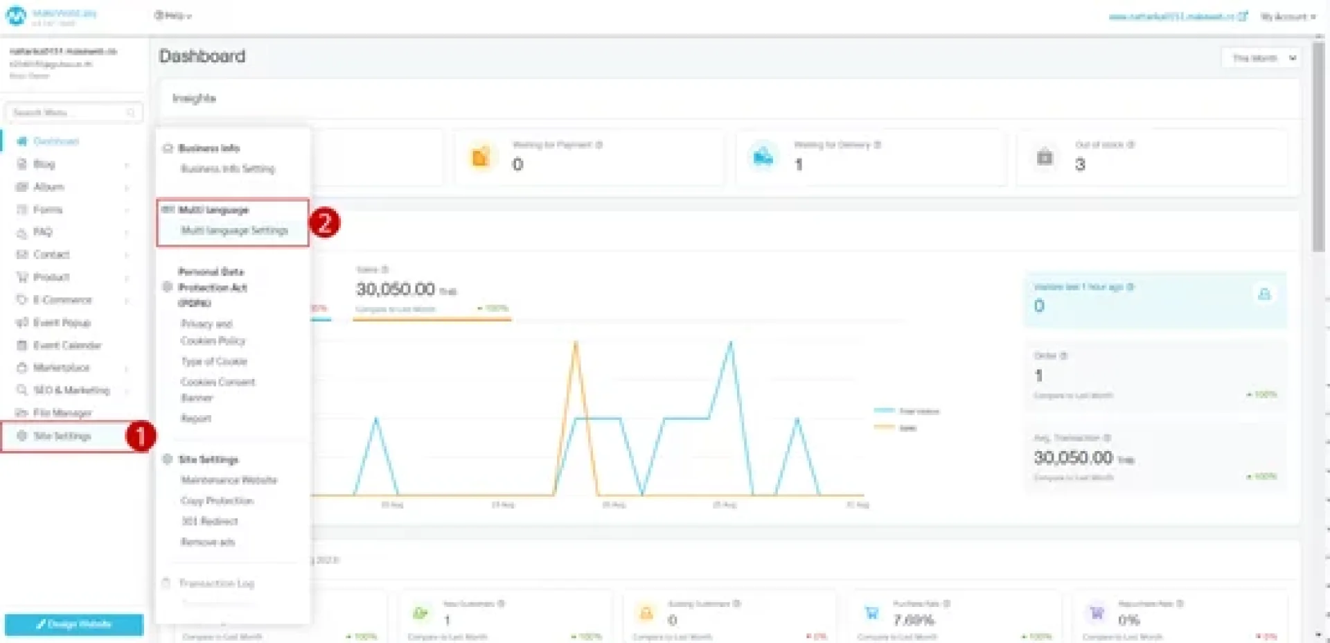 1.ไปที่เมนู ตั้งค่าเว็บไซต์ (Site Settings)