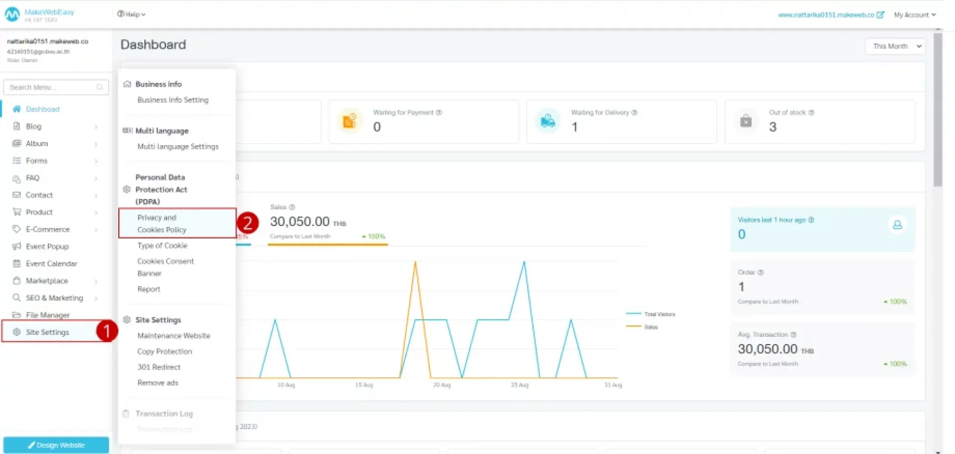 1. ไปที่แถบเมนู ตั้งค่าเว็บไซต์ > พ.ร.บ. คุ้มครองข้อมูลส่วนบุคคล