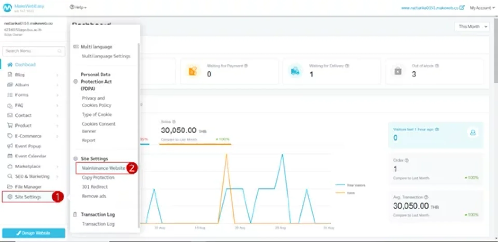 1.ไปที่แถบเมนู ตั้งค่าเว็บไซต์ (Site Settings)