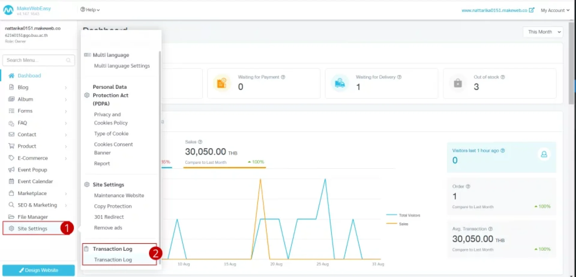 1. ไปที่เมนู ตั้งค่าเว็บไซต์ (Site Settings)
