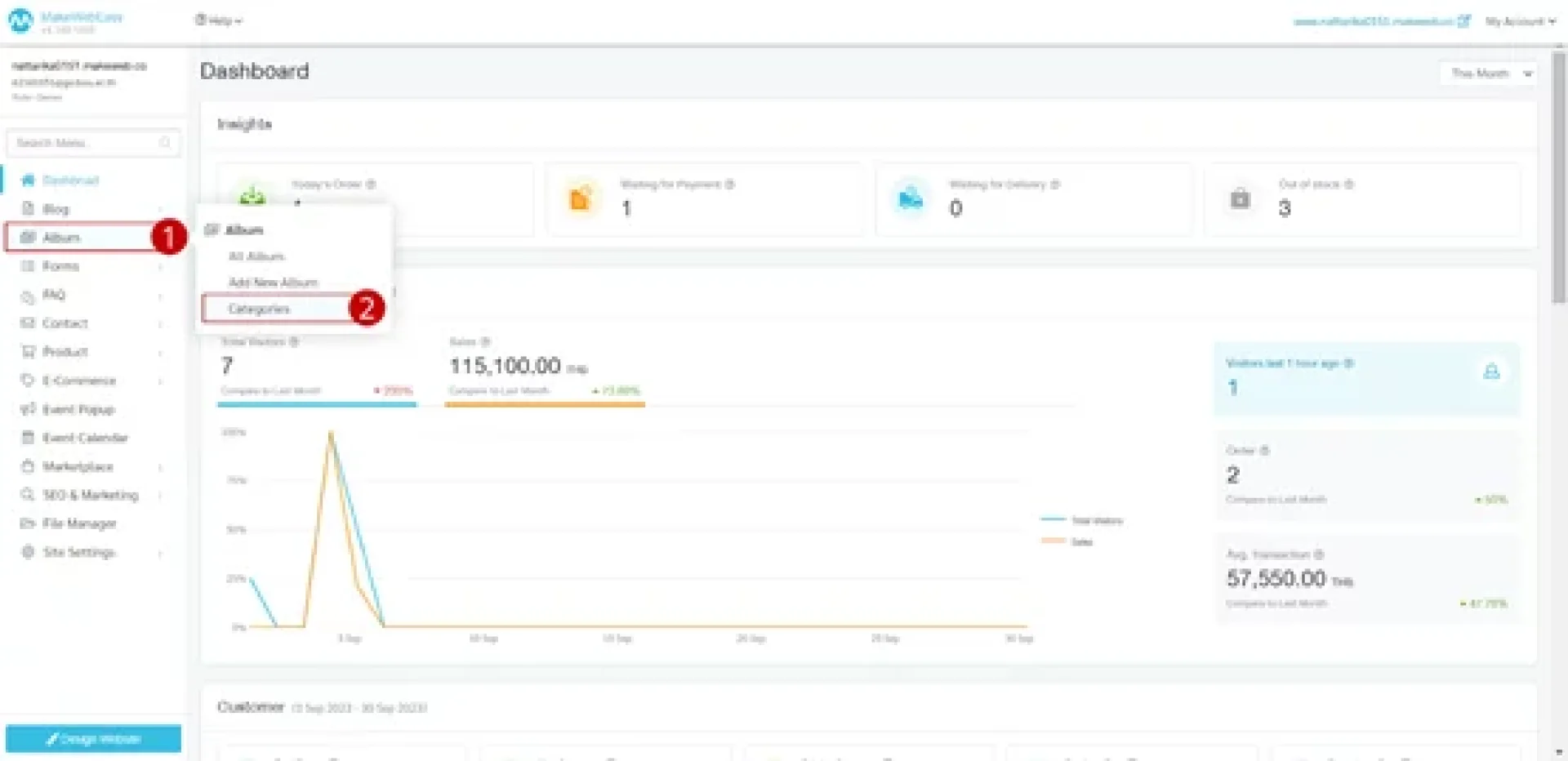 คำแนะนำเพิ่มเติม : ผู้ใช้งานสามารถนำข้อมูลหมวดหมู่อัลบั้มที่ทำการสร้างไปแสดงที่หน้าเว็บไซต์ได้ โดยการไปเพิ่มที่ การสร้างอัลบั้มใหม่