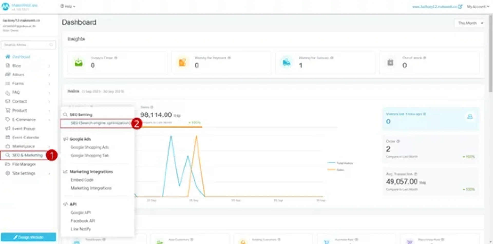 1.ไปที่เมนู SEO & การตลาด (SEO & Marketing)
