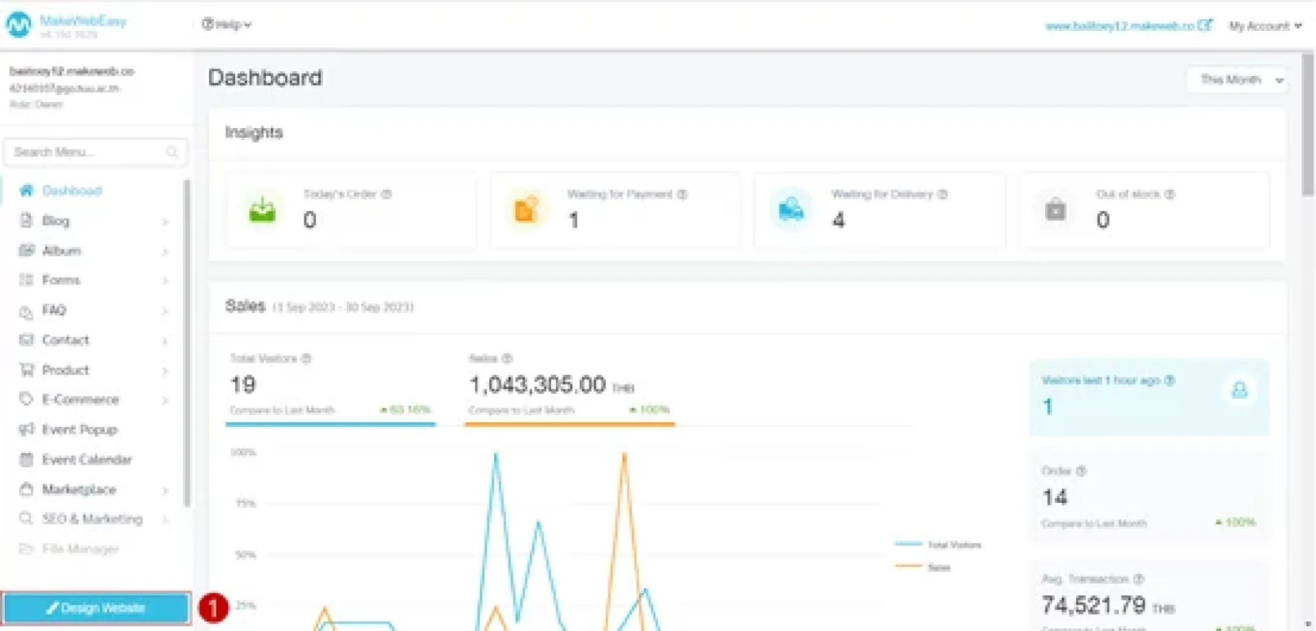 1.คลิกที่ปุ่ม ปรับแต่งเว็บไซต์ (Design Website)