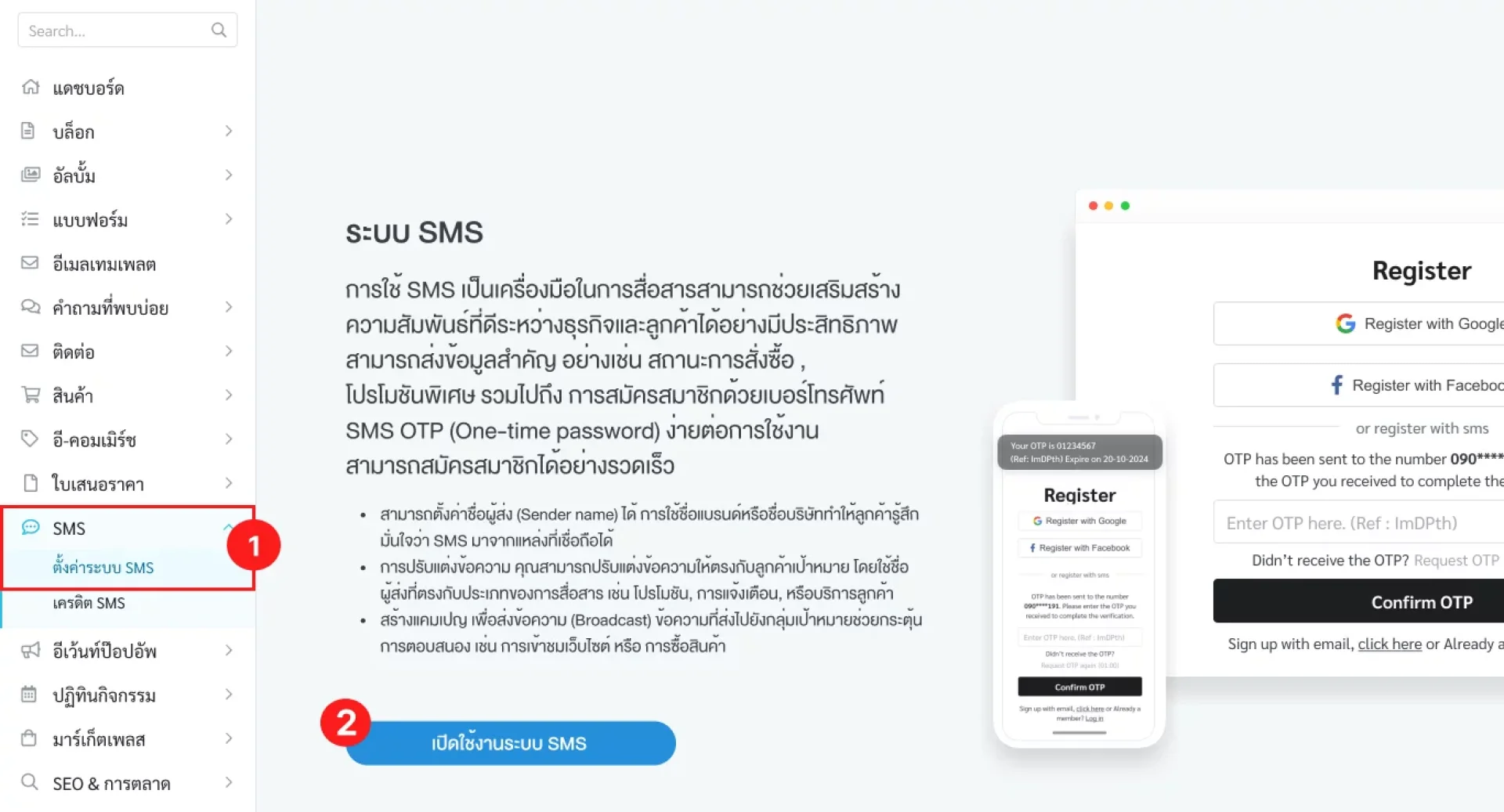 วิธีเปิดใช้งานระบบ SMS บนเว็บไซต์