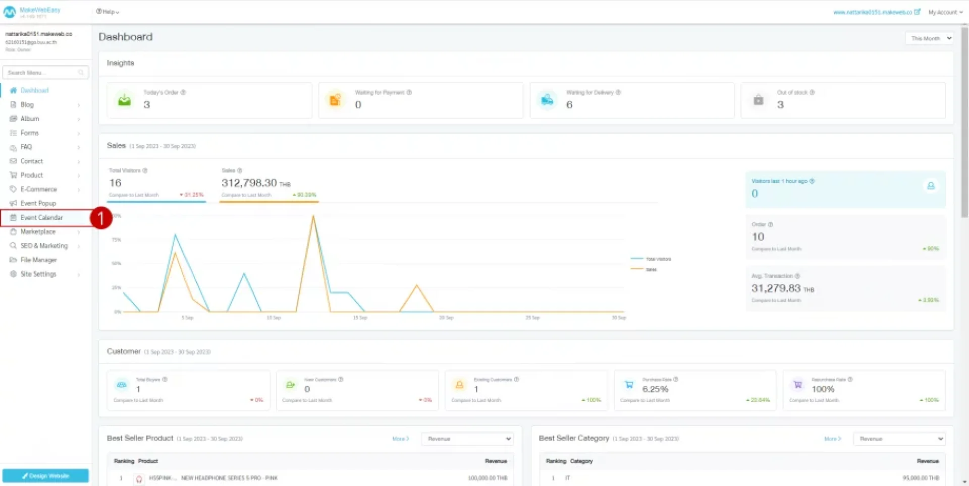 คำแนะนำเพิ่มเติม : ผู้ใช้งานสามารถเปิดใช้งานปฏิทินกิจกรรมบนหน้าเว็บไซต์ได้ โดย การสร้างหน้าเพจ เพิ่มและแก้ไขวิดเจ็ต (Add Widget) และการปรับแต่งส่วนของเนื้อหา (Add Section) โดยการเลือกปฏิทินกิจกรรม (Events Calendar)
