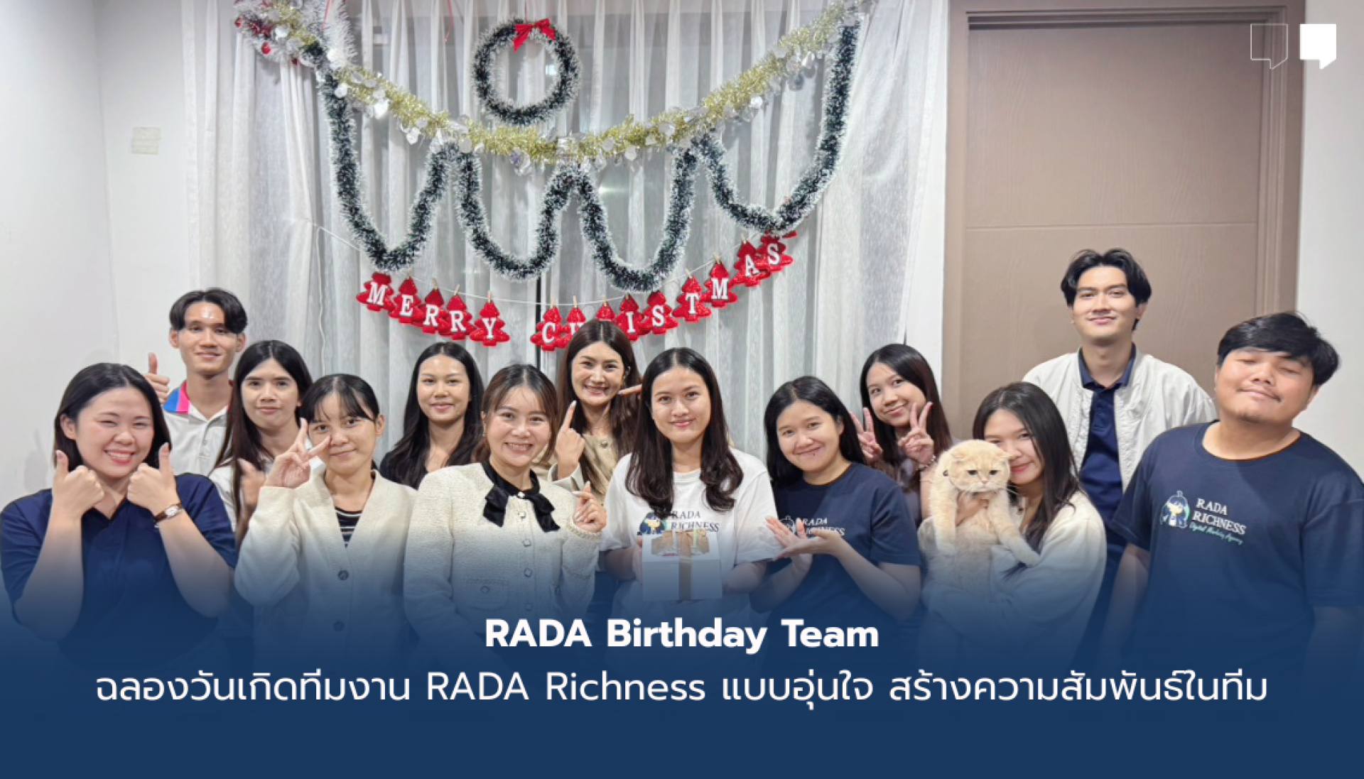 วัฒนธรรมฉลองวันเกิด หรือ RADA Birthday Team คือหนึ่งในกิจกรรมเล็ก ๆ ที่ตั้งใจออกแบบเพื่อให้ทีมได้รู้สึกว่า เราเป็นทีมเดียวกันจริง ๆ ไม่ใช่แค่เพื่อนร่วมงาน แต่คือ ครอบครัวการทำงาน ที่คอยสนับสนุนกันทั้งเรื่องงานและเรื่องใจ