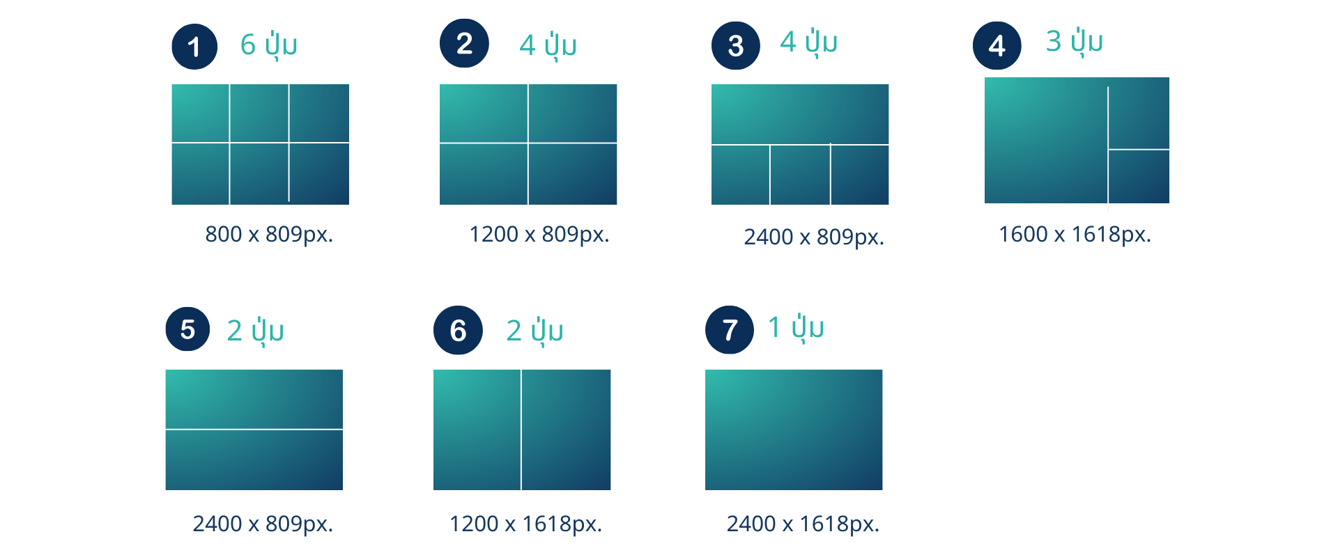 สามารถฝังลิงก์ใต้ปุ่มได้สูงสุดถึง 6 ลิงก์ (1 ปุ่ม ต่อ 1 ลิงก์)