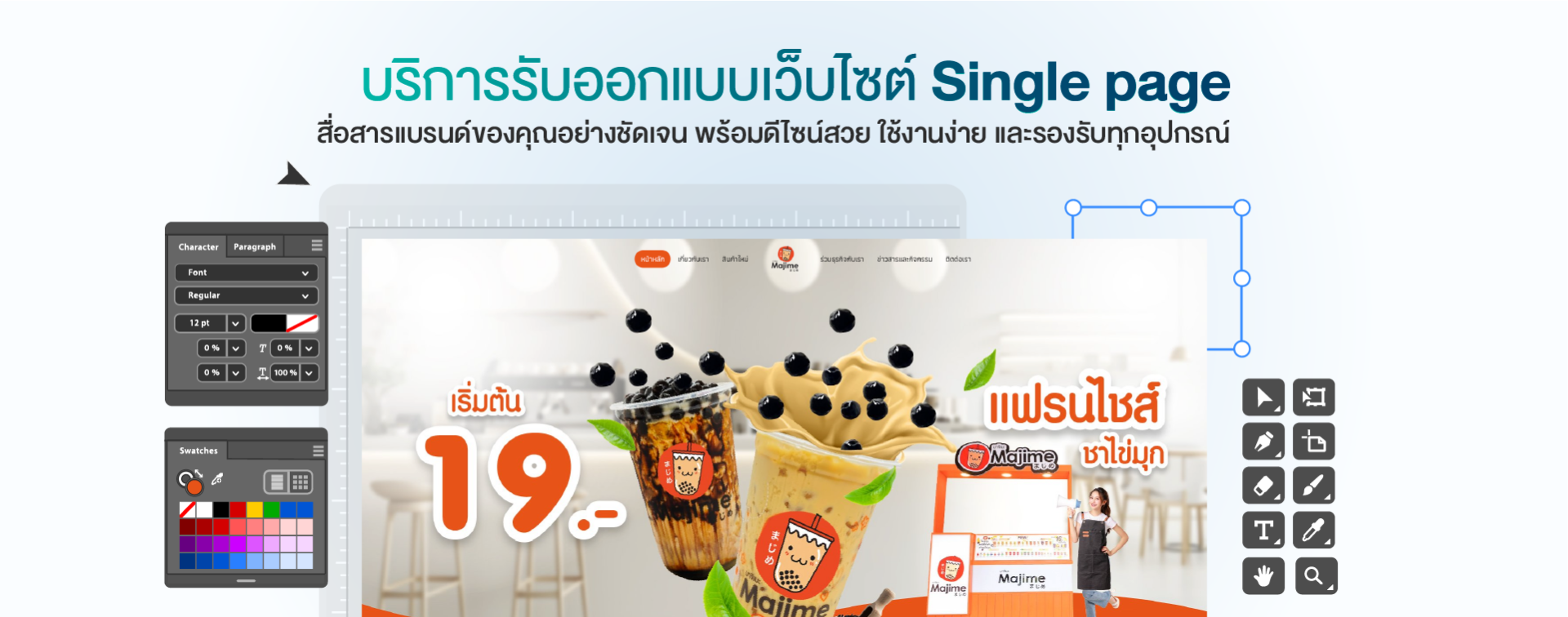 เว็บไซต์หน้าเดียวแนวใหม่ ที่ช่วยให้ธุรกิจของคุณสื่อสารข้อมูลสำคัญได้ครบในหน้าเดียว ออกแบบให้สวยตรงโทนแบรนด์ ดูง่าย โหลดไว เหมาะสำหรับการโปรโมตสินค้า